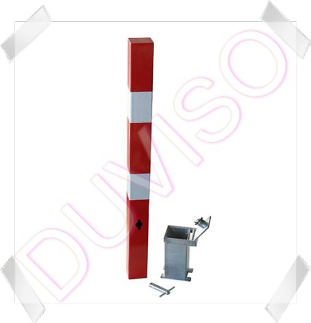 Potelet tout acier avec corps galvanisé par électro-zingage + poudre polyester cuite au four (Rouge et Blanc réfléchissants). Fixation par scellement direct du fourreau (fourni avec clef triangle).