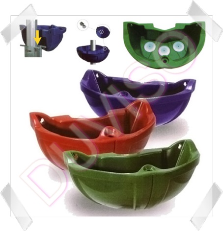 Une demi-vasque « tous coloris » qui s'affiche en suspension, contre les murs ou sur les mâts de fleurissement. Jardinière en polyéthylène roto-moulé haute densité (PEHD), teinté dans la masse, avec double paroi pour la protection thermique des racines (la double paroi sert également de réserve d'eau). Tous les coloris du nuancier RAL sont possibles (avec minimum quantité) et de nombreux coloris standard n'entraînent aucun supplément.